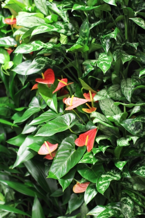 Создать настроение в помещении помогут разные фактуры листьев: плавная форма листьев аспидистры будет успокаивать и станет отличным фоном для других элементов интерьера, а древесный ствол ямайской драцены и ее маленькие яркие листья станут главным элементом в помещении.